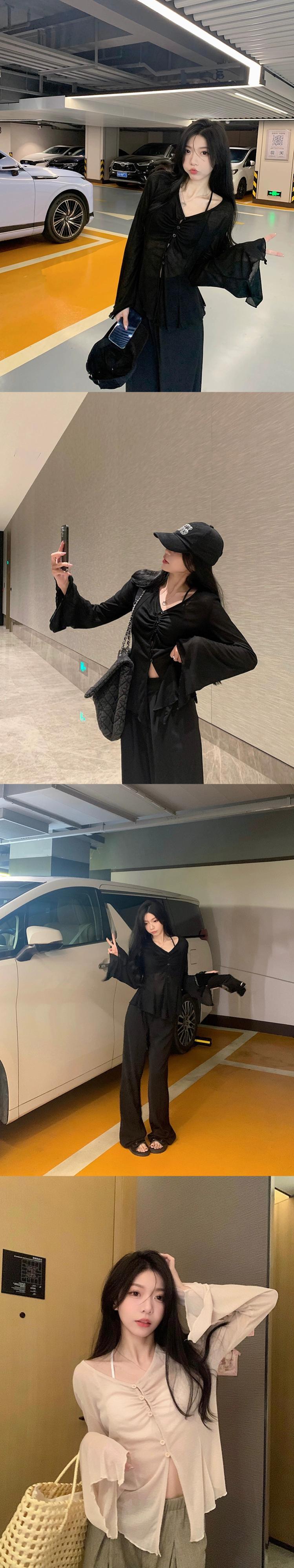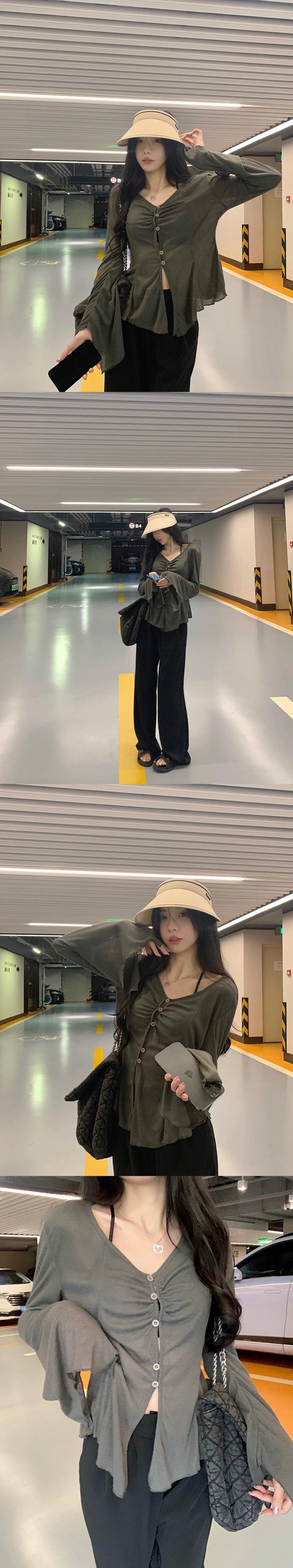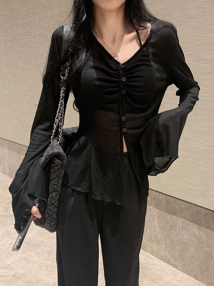 純粋な欲望日焼け止めカーディガン婦人服夏 2023 新しい薄セクションデザインセンス V ネックフレア長袖ニットセータートップ ロング レッド サマー 夏物 Vネック kawei70854681430 | cft21