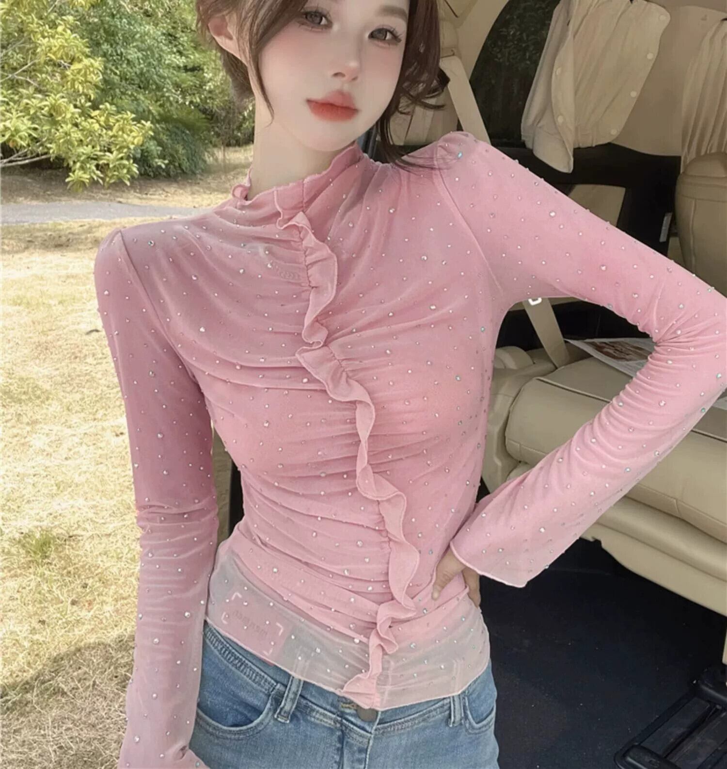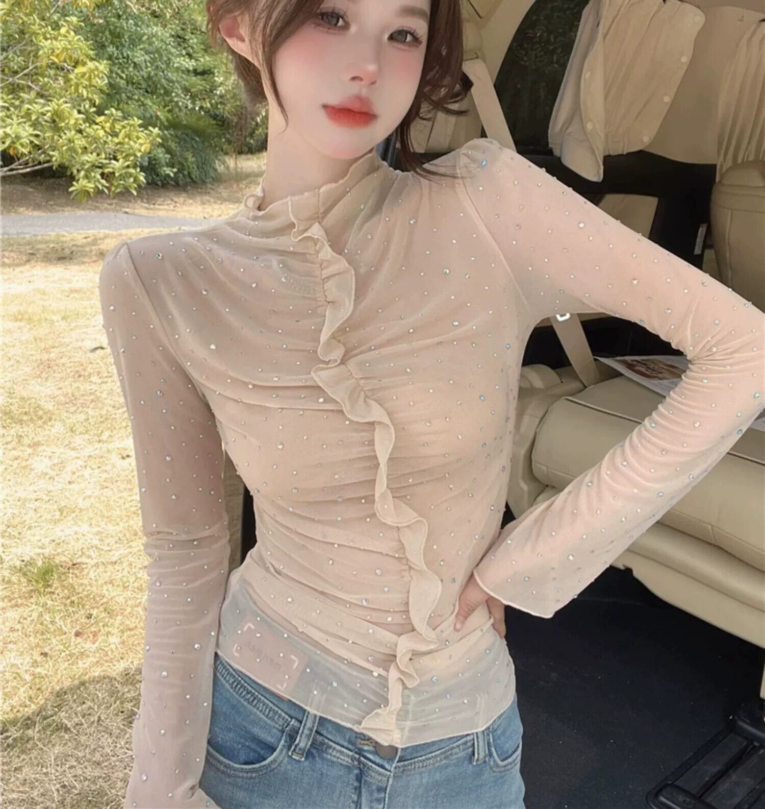 秋冬、ユニーク、シック、ウエスタンスタイル、綺麗、甘い、スリムメッシュトップス、ニッチボトムシャツ、レディースインナー 大人ガーリー スウィート キュート カジュアル オータム 秋物 ウィンター 冬物 kawei32837255821 | cft21