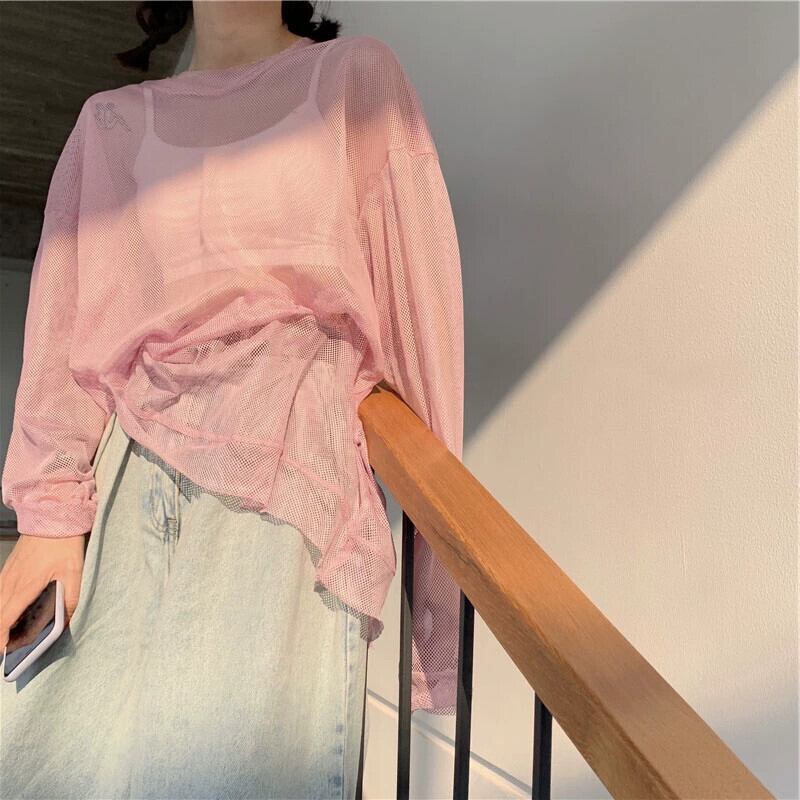 フェイシャルマスクピンクビッグTシャツ女性夏長袖ミッドレングスルーズインナーレイヤリングシャツイントレンディトップ日焼け止めカバーアップ ロング サマー 夏物 kawei71373389157 | cft21