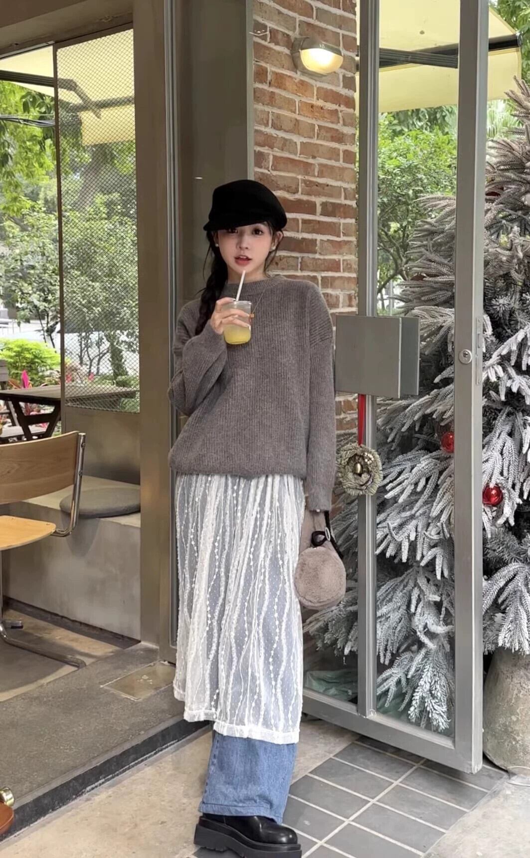 メッシュレースバットカーテンスカート女性の秋と冬のハイウエストスタック凹面エプロン裾ミッドレングススカート中空ガーゼスカート ハイウェスト オータム 秋物 ウィンター 冬物 kawei70176905650 | cft21