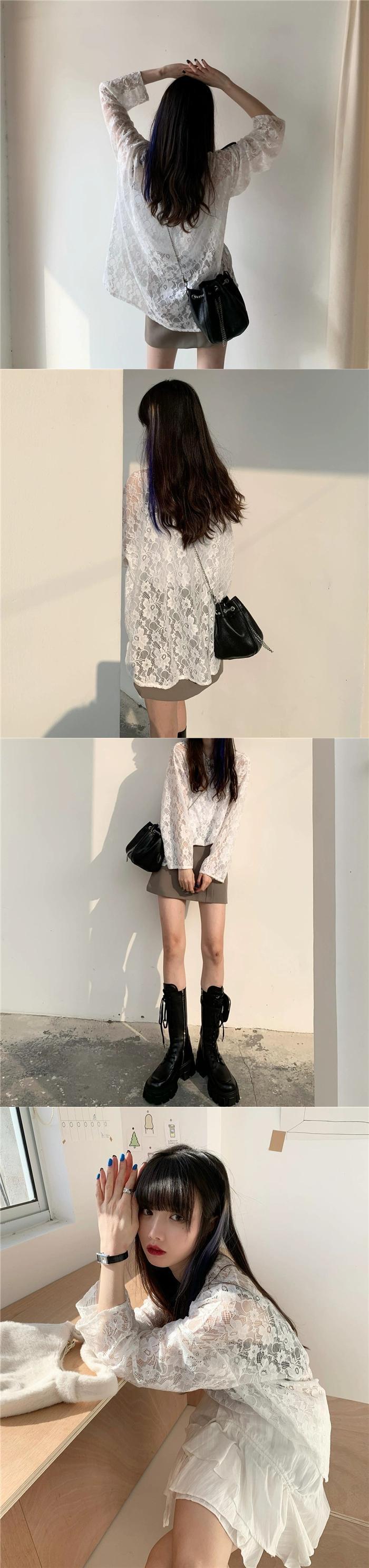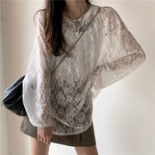 夏の女性インターネットセレブのルーズレースボトムシャツ、女性のファッショナブルなインナーメッシュシャツ、セクシーな中空日焼け止めトップ、トレンディな サマー 夏物 kawei85366733551 | cft21