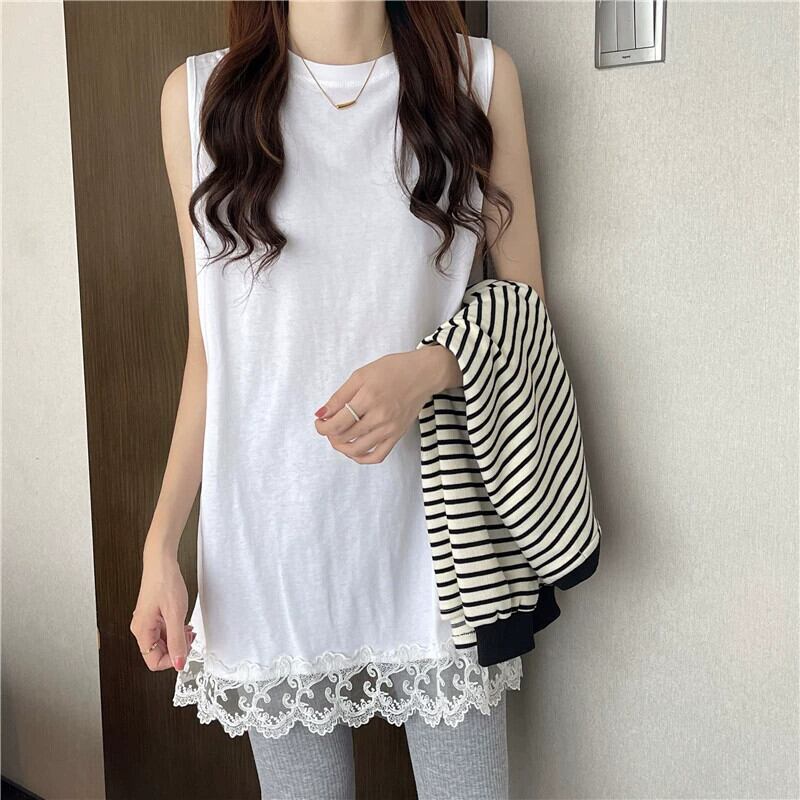 ヨーロッパステーション 2021 秋スタイル西洋スタイルチョッキノースリーブベストトップと多用途レーススプライシング Tシャツ女性 オータム 秋物 ヨーロピアン kawei99145914869 | cft21