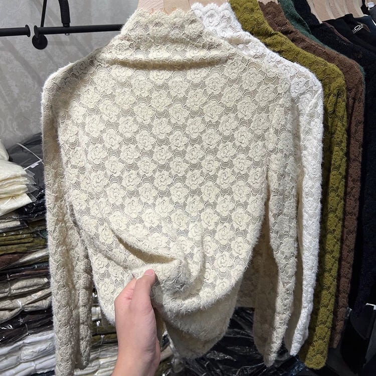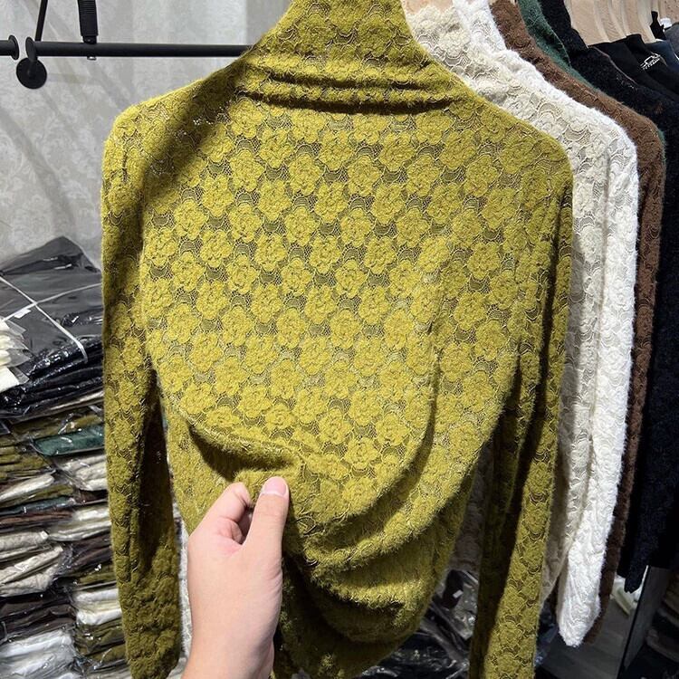 秋冬のハーフタートルネック起毛レースボトムシャツレディース、ベルベットと厚みのあるウエスタンスタイルのインナー長袖レースメッシュトップ ロング オータム 秋物 ウィンター 冬物 kawei37166192582 | cft21