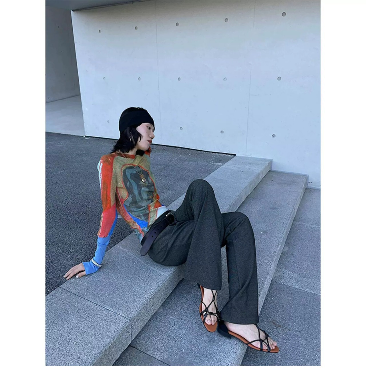 ユニークで非常に見栄えの良い女性用プリントメッシュトップス、ニッチでシックなグラフィティブラウス、春と秋、インナーレイヤリングシャツ スプリング 春物 オータム 秋物 kawei53029268756 | cft21